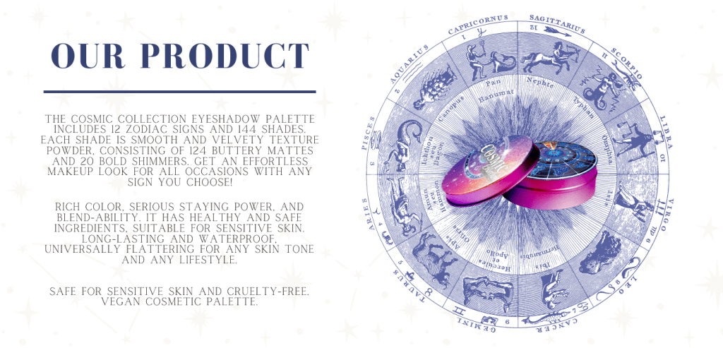 This mock website features a product I designed as part of a class project called Cosmic Collection. I developed this website to demonstrate how the product could be marketed if it were an actual offering by a beauty company. For additional product images I created using this concept, please visit my “Graphic Design Portfolio” under the “Portfolio” tab for more information on the inspiration behind my idea.