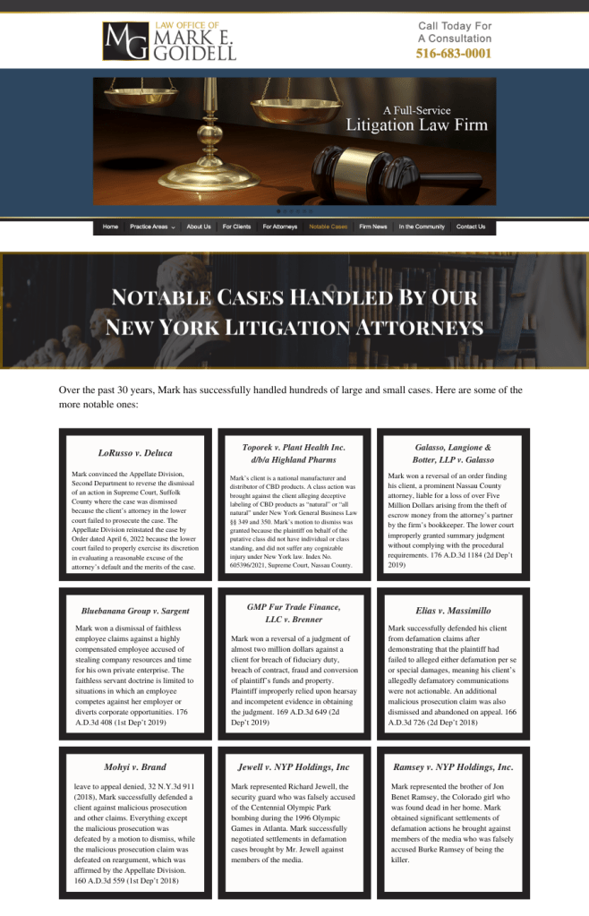 Showcasing a law firm’s notable cases on its website is vital for several reasons. First, it allows potential clients to see the firm’s experience and success in handling similar cases. Second, it helps establish the firm’s credibility and expertise in the legal field. Finally, it can help attract new clients looking for a reputable and experienced law firm to represent them.